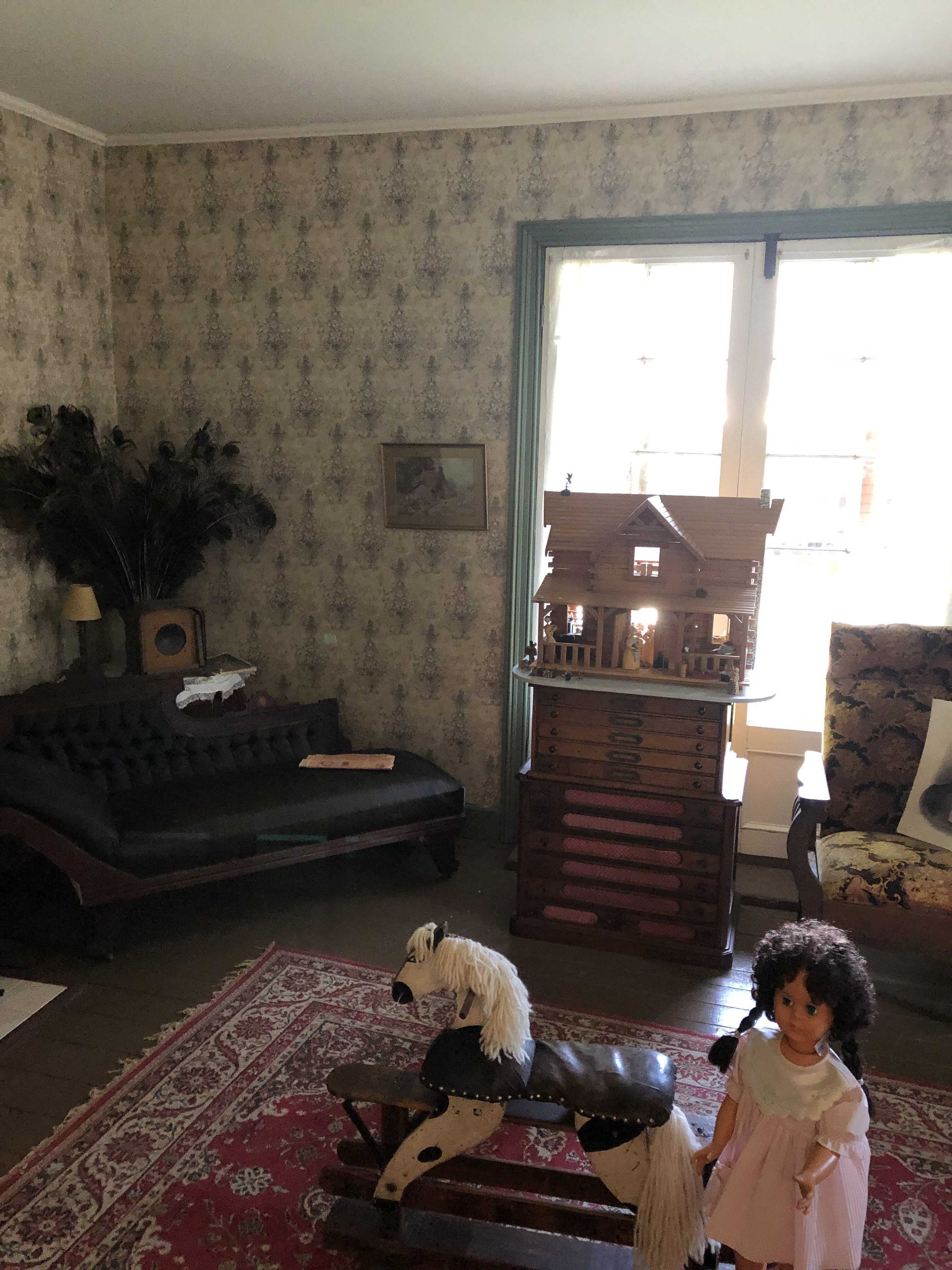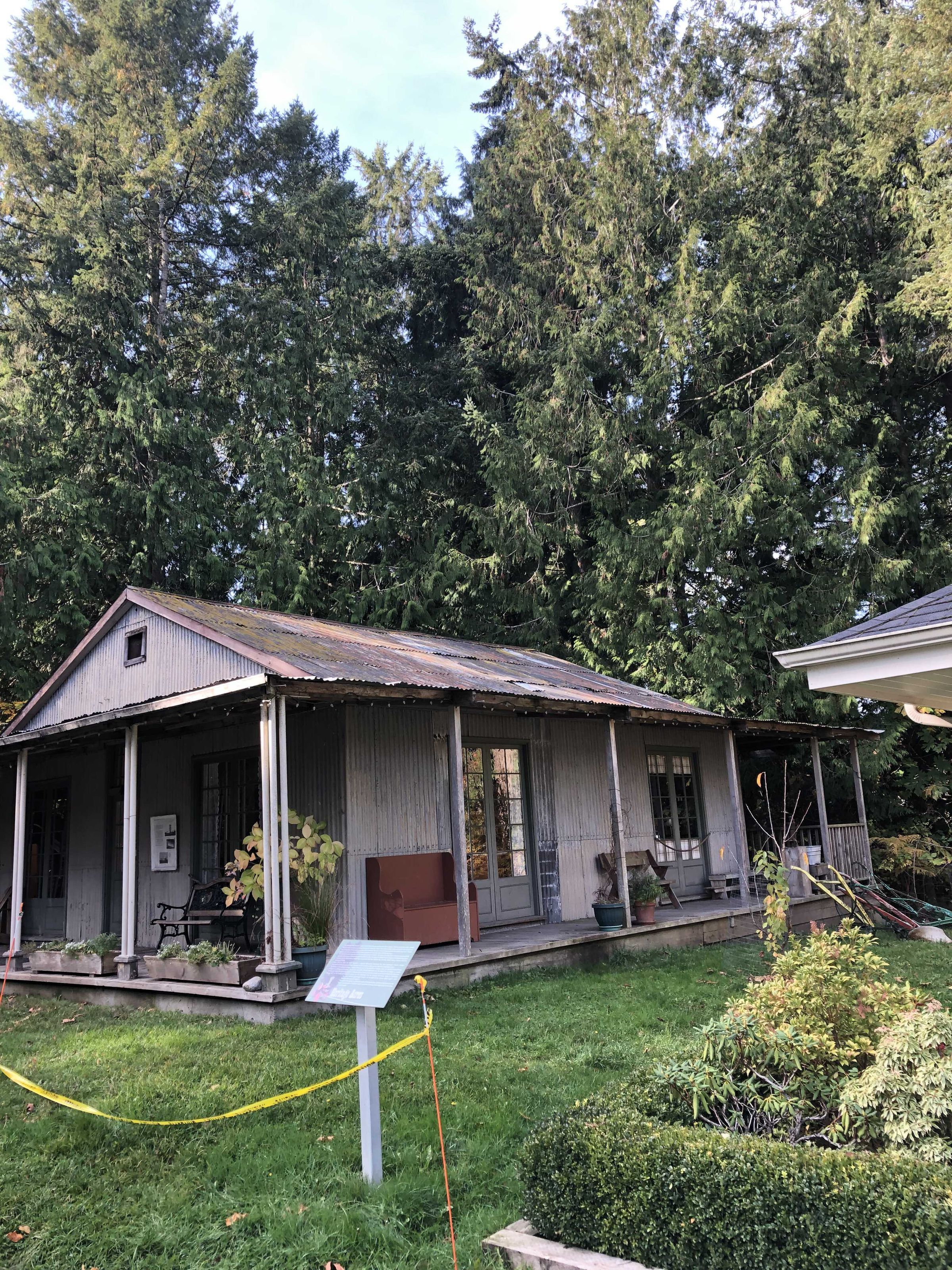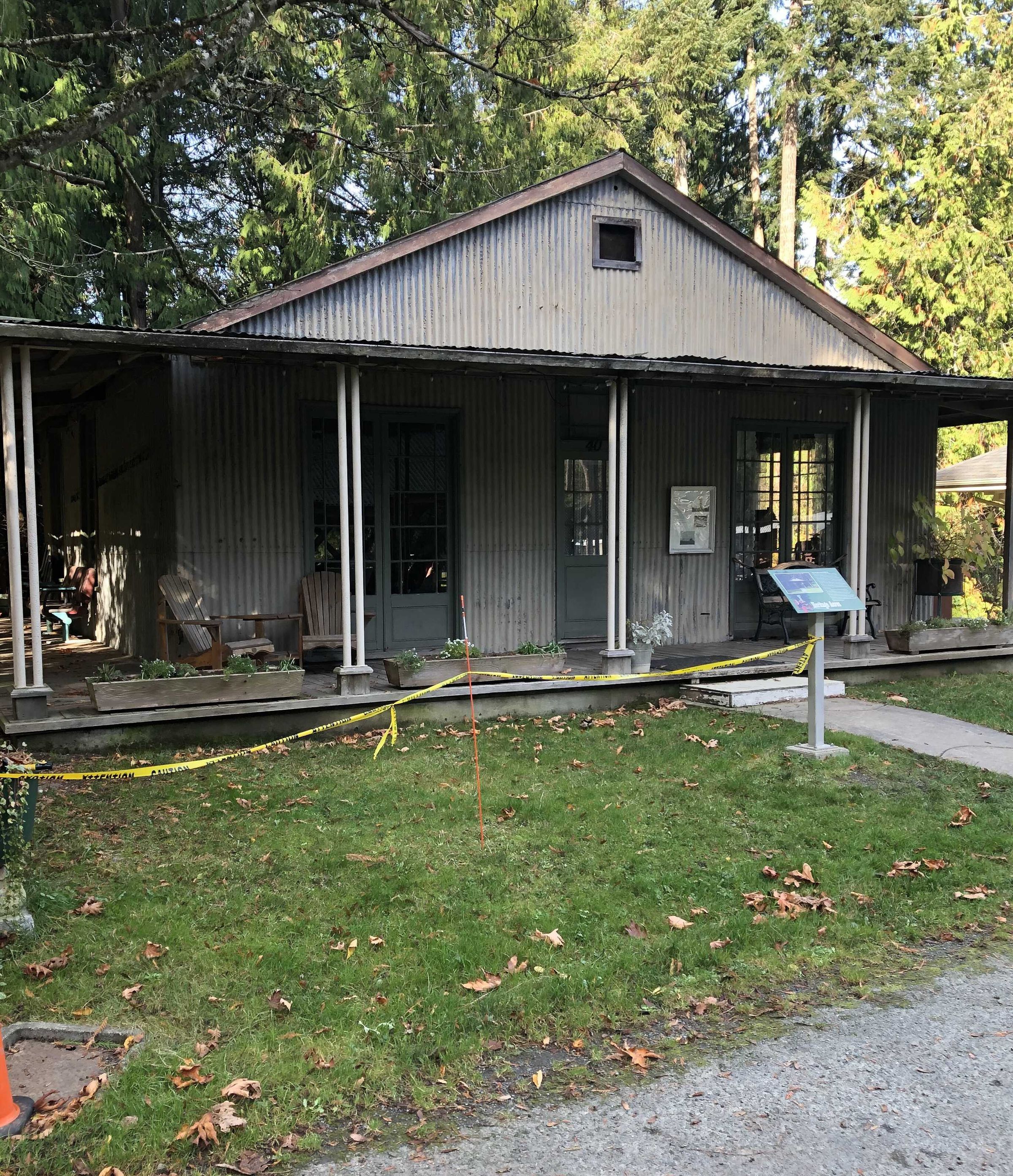 Prefabricated metal residential building made in England in 1859. In 1984, through the Provincial Government Heritage Branch, the Saanich Historical Artifacts Society (SHAS) took possession of this 30 foot by 30 foot corrugated iron, timber framed building from the British Columbia Buildings Corporation. Located behind the Queen’s Printers at 563 Superior Street, Victoria, it had been used as a Tinsmith shop, but was scheduled for demolition. Upon examination the Heritage Branch discovered that the building has high heritage value. SHAS was requested to provide a suitable site for its safe keeping, future restoration and interpretation.