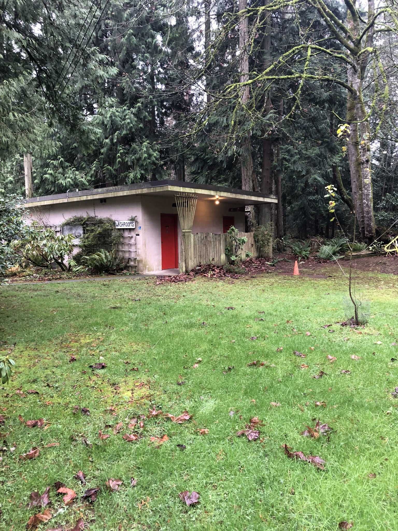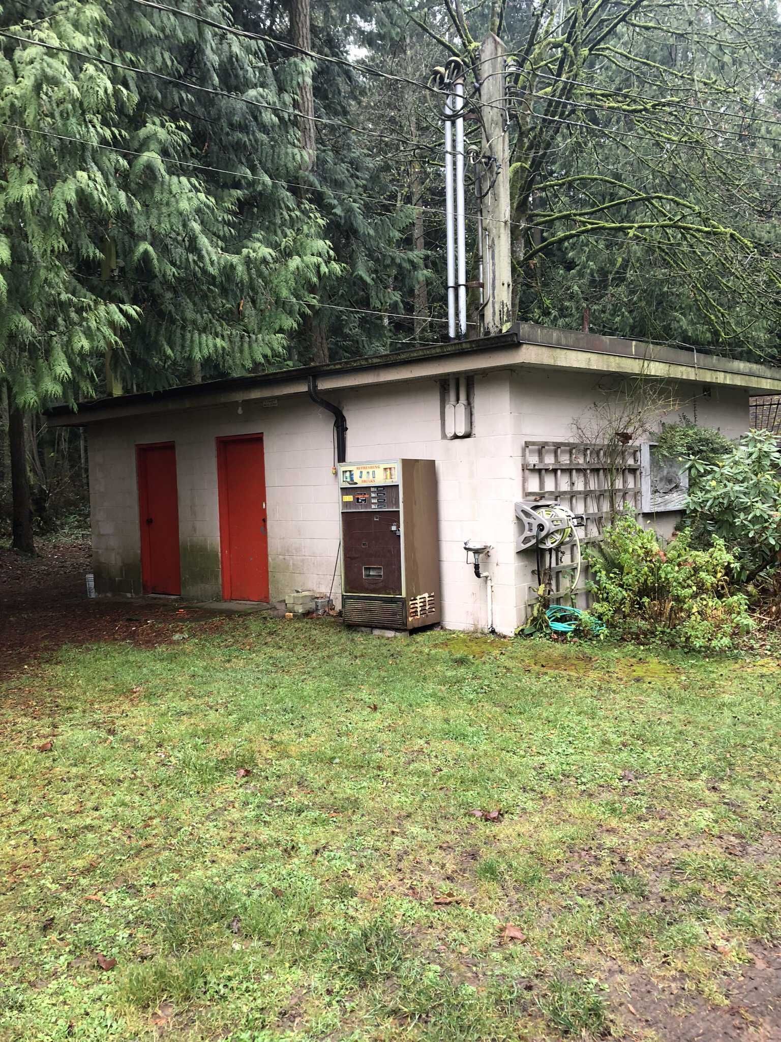 This building has a concrete floor and foundation, concrete block walls and partition and a flat tar and gravel roof. The size is approximately 23' X 24' X 8'. This building houses the Men's and Women's wheelchair accessible washrooms, a 600amp electrical service room and a small service room. It also houses the pump for our sewage disposal system, pumping form the septic tank over to the disposal field on the west side of Sandhill Creek. This building, equipment and disposal field system represents an investment of $32,000 in cash, $10,148 from a New Horizons grant and the balance in donations from members and others, plus much volunteer labour and loaned equipment. We used our own lumber, sawn and planed on site. The plans for this building were approved and met all applicable code requirements. The building has had a new roof and was painted inside in 1993.