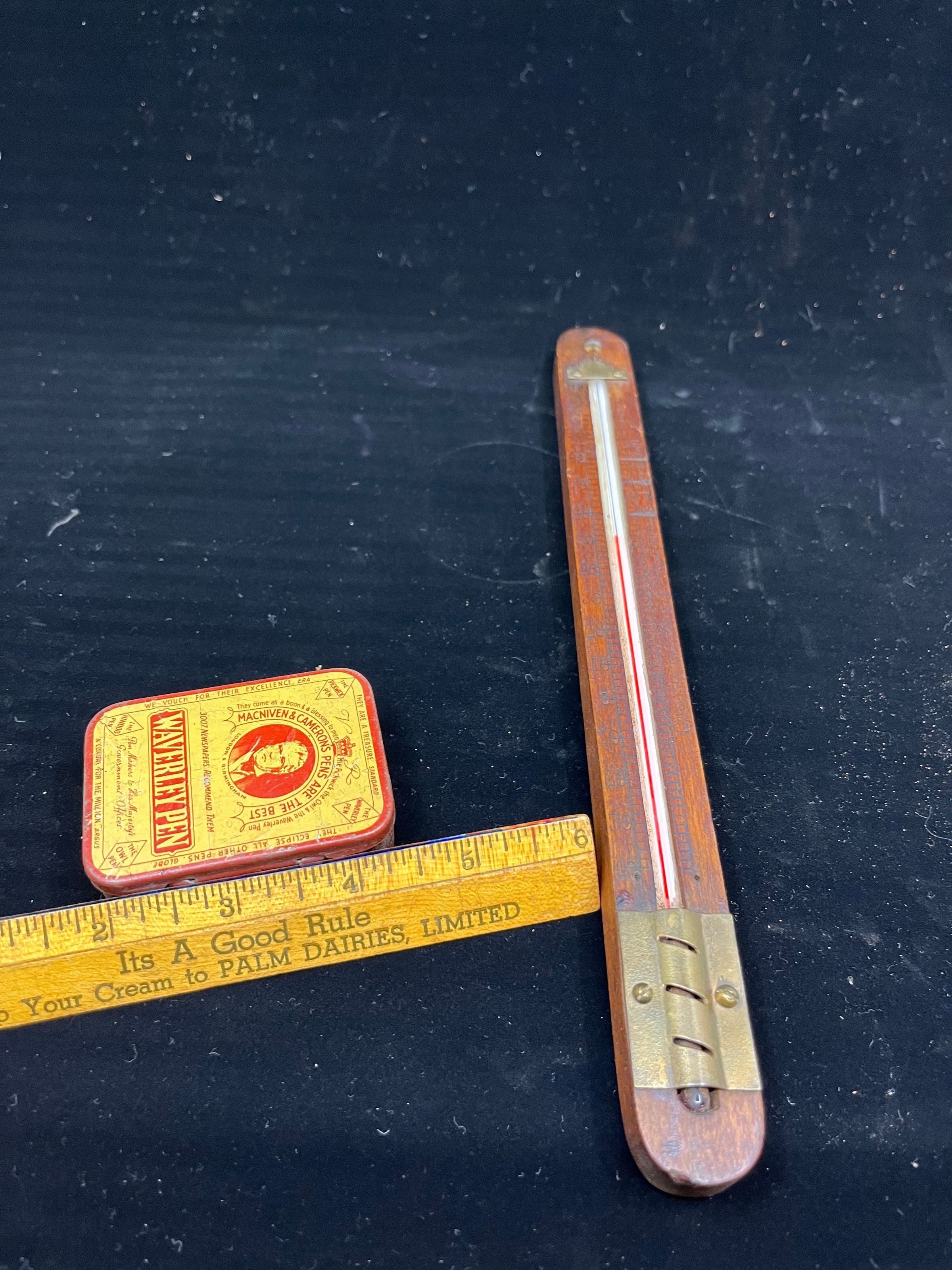 Wooden backed alcohol thermometer