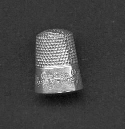 Raised rim, wider plain band above. Knurling to and over top.Stamped 9 (size) and Sterling on the plain band. INside on apex is the Simon Bros. Philadelphia logo.