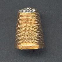 Tall brass thimble, with a raised rim and top of steel.(attracts magnet) 2 (size) on rim.