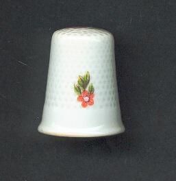 White , bluish tinge, china thimble with 4 small sprays of pink and bue flowers and leaves.Hand painted ? Stamped inside Limoges, France