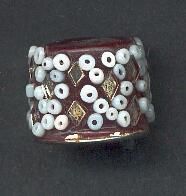 TailorÕs type thimble, open ended. According to ad it is made of chips of mjirror and white beads baked into a resin material called LAC and put onto a base metal form