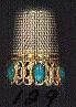Continental silvewr thimble wuth orate cutout gold wash band set with 6 small turquoise stones.800(silver content) stamped in knurling. Lining is also gold wash.