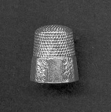 Sterling silver ten panelled band at rim, plain alternating with stylized floral spray. Size 8 on one plain panel Knurling from band to and over top. Simon Bros. loigo in apoex with Sterling below.