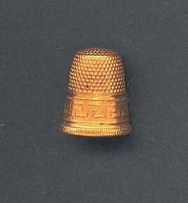 Brass, red ciolour predominates, with lined raised rim. Wide band of Greek key pattern right, above. No marks.