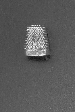 Brass, mostly zinc, small thimble with narrow plain rim. No marks.