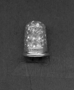 Sterling silver thimble with raised rim, plain band above with English hallmarks for size 9, C.H. (Charles Horner - maker) and Chester mark with year mark for 1912. All over ,chrysanthenum pattern above and over top.