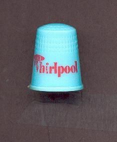 Blue plastic advertising thimble with raised rim. Red printing advertising ÒWhirlpool Buy With ConfidenceÓ. U.S.A 2 in apex.