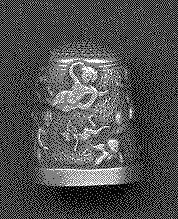 Pewter ÒCupiuds At PlayÓ thimble. Heavy. Plain band and many raised cupids cavortting around the body of the thimble.Stamped around underside of rim Òc in circle Battersea Ltd. 1978 Battersea PewterÓ Knurling on top