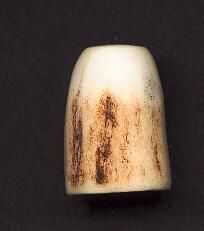 Creamy white elk horn thimble with brown streaks.. Knurling on top.