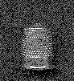 Steel thimble, very large with plain rolled rim. Plain narrow band with 0 (size) stamped on.