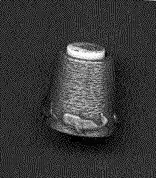 Pewter thimble with Scrimshaw top. Thimble has raised whales around rim and body of thimble has wavy lines etched over it. Top white whale bone with etching of sailing ship. No marks
