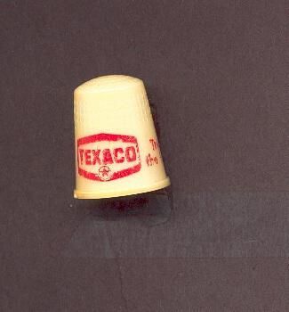 Cream coloured Advertising thimbe with red lettering. Advertising ÒTexacoÓ in logo with star and ÒTrust the StarÓ. U.S.A.4 in apex.