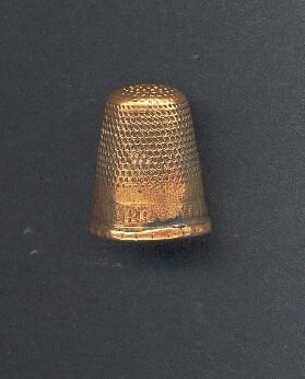 Brass thible with rolled patterned rim. Wide plain band above with ÒI----(ll ?) Marry YouÓ and an oak leaf pattern around. Worn words, No marks.