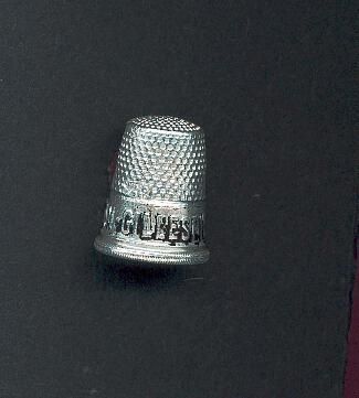 Aluminum Advertising thimble. Riolled lined rim. Band painted black, most of it gone. Advertising ÒKingham - Gillespie-Coal**Ó Made in U.S.A. stamped in indentations which go from band to and over top.
