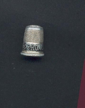 Aluminum Advertising thimble with black band. Rolled vertically lined rim. Advertising ÒCicero Advocate**Ó Stamped Austria in knurling.