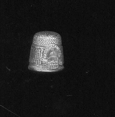 Commemorative thimble. Silver plate squat shape,very heavy thimble. One side has raised head of Charles, Prince of Wales and Diana with written words ÒCharles& Diana - July 29Ó Other side raised crest of St.Pauls Cathedral. No marks.