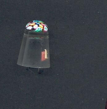 Glass thimble with blown glass coloured top - many colours, blue and red mainly. Decorative only