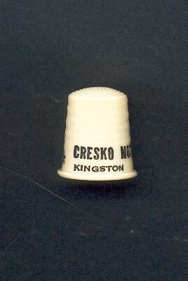 Cream coloured plastic Advertising, early thimble with black printing. ÒCresko Motors K.F.Distributors Wilkes-Barre, Kingston*Ó inside apex B&B St.Paul, U.S.A.