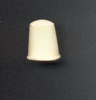 Cream coloured early plastic thimble - may be French ivory or bakelite. Raised rim. Diamond knurling to top, round on top. Inside ÒGermany EÓ in apex.