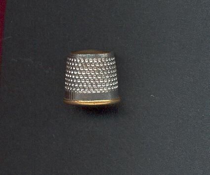 TailorÕs thimble of steel with brass lining.Rolled rim./Plain band above rim stamped 3 (size) and England.