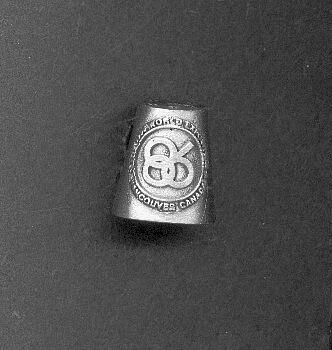 Pewter Souvenir thimble for the coming exposition in Vancouver. Expo logo - entwined 8 and 6 in circle on thimble with World Exposition Vancouver Canada around logo. Flat top with stars. No marks.