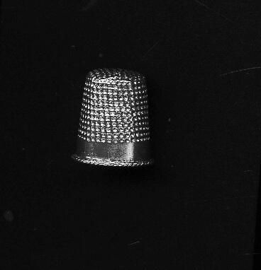 Hand crafted silver thimble. Rope style rim. Wide plain band above with 1 on it. Waffle type knurling to and over top which appears to be hand done. No other marks.