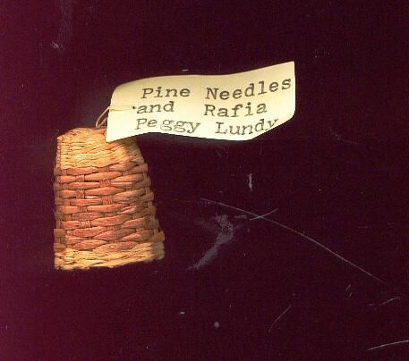 Woven raffia and pine needle thimble. Tan and beige colours Unlined and unmarked.