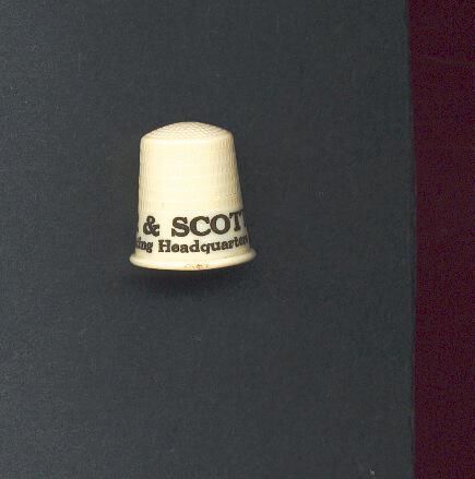 Cream coloured early plastic Advertising thimble. with rolled rim. Black printing advertising Ò*Napier & Scott SeattleÕs Heating HeadquartersÓ Inside apex B&B St. Paul U.S.A.