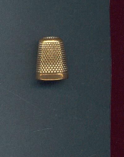 Plain brass thimble with plain narrow band at rim. Knurling to and over top with a 1 in center top.