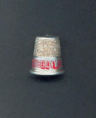 Aluminum Advertising thimble with red band. Advertising ÒChamberlin Metal Weather Strip**Ó