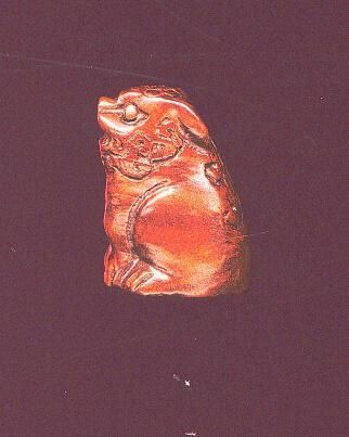 Hand carved wooden novelty thimble. Carved dog, sitting. Knurling on topof head.