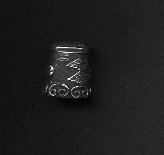 Silver wire work thimble. Side seamed, added top. Hand knurled top Short, squat shape compared to usual Mexican thimbles.Swirl pattern at rim, leaves and flowers on body. Inside stamped Sterling - also another stamp - part of which reads Mexico.