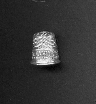 Aluminum Advertising thimble. No colour visible on band. Rolled rim . Slightly rounded band of advertisingÓPut a Little Sunshine In Your Home Heath & Milligan MFg. Co.Ó