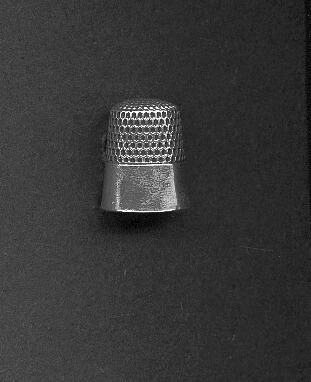 Silver thimble. Very plain. Plain band at rim - 1/2 thimble then knurling to and over top. Out of round.Inside apex the logo of Webster Co. North Attleboro, Mass. U.S.A. and size. and Srerling.