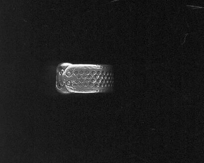 Oriental - silver finger ring thimble.- overlapping. Decorative end at overlap with cutout. no marks.