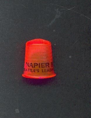 Orange clear plastic Advertising thimble with black lettering. Advertising ÒNapier & Scott SeattleÕs Leading Fuel Dealer*Ó