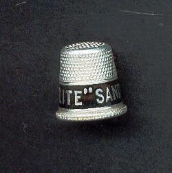 Aluminum Advertising thimble with black band. Rolled vertically ribbed rim. Advertising ÒLite Sanitary SoapÓ. No marks.