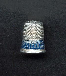 Aluminum Advertising thimble with blue band. Advertising ÒNorthwestern Wet Wash Bruns.5100Ó No marks.