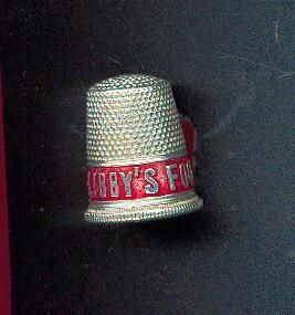 Aluminum Advertising thimble with red band. Advertising :ÓLibbyÕs Food Products*Ó. Austria stamped in knurling above band.