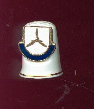 White glazed bone china ÒCommemorativeÓ thimble with gold band near slightly fluted rim. Added crest in silver, white and navy blue depicts a silver airplane propellor Inside Fine Bone China Bucking Horse & Rider By WatsonsÓ