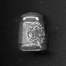Millenium Commemorative silver thimble. Body of thimble has matte finish.Knurled top. The 2000AD is set on a raised decorative panel. English hallmarks - S(I) 925 Birmingham and a (2000).