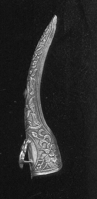 Silver thimble with narrow band of pattern above added rim. Patter of checkred squares./ Stamped RD 429537 9 (Size) CH (Charles Horner - maker) 1904