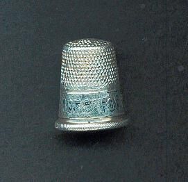 Aluminum Advertising thimble with rolled rim. Black band - not much paint left. Advertising ÒRothÕs Shoes For WomenÓ No marks.