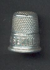 Aluminum advertising thimble. Advertising Singer Sewing Machines and small star. Faint signs of red paint still on band.