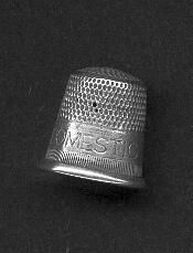 Rolled rim, narrow band of vertical; lines above rim, plain wide band with Domestic Sewing Machine. Also ion band Sterling and 10 -size.
