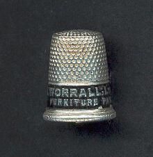Aluminum advertising thimble with black band advertising ÒWm.Worrall Ltd.1062 Granville Furniture Par Exc ellenceÓRolled vertically ribbed rim.