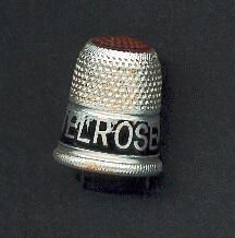 Advertising thimble with simulated yellow stone top. ÒUse Melrose TeaÓ on black band.