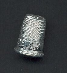 Advertising thimble with ribbed roilled rim. Black band barely visible. ÒNews of the World Sale Exceeds 3000000 Copies on band. Hole in top of thimble. Knurling from band to and over top.